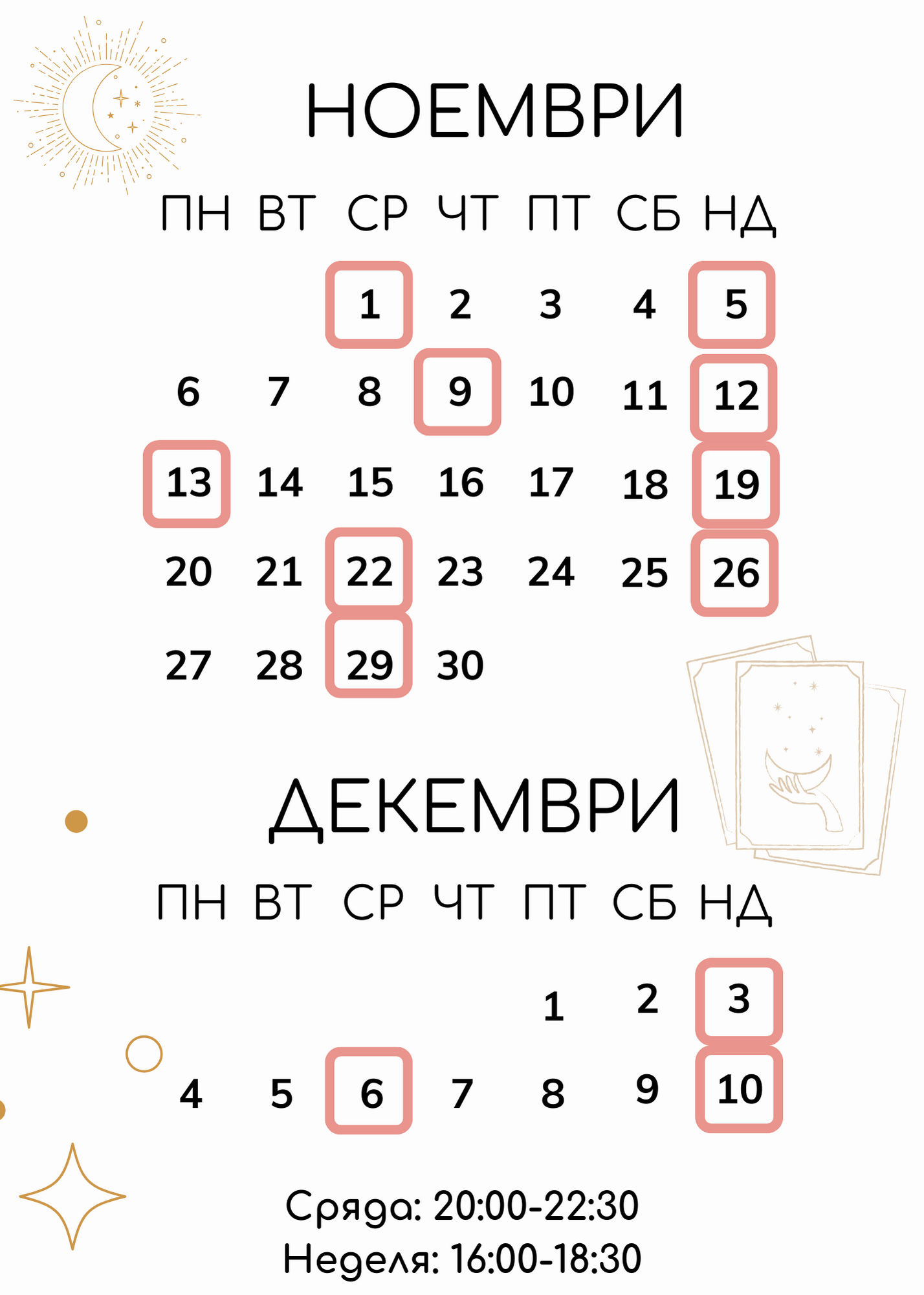Неделя, 10 декември, 16:00 - 18:30 ч.: Лекция 12 - Датиране с Таро
